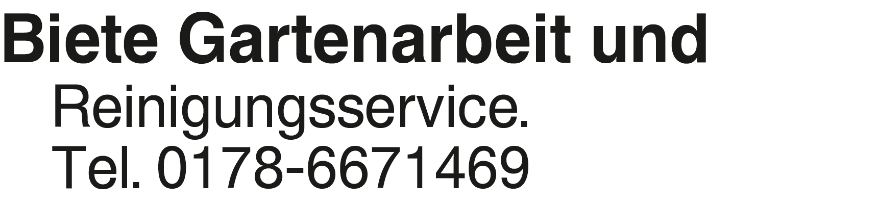 Biete Gartenarbeit und Re Biete Gartenarbeit und Reinigungsservice. Tel. 0178-6671469Das könnte Sie auch interessieren