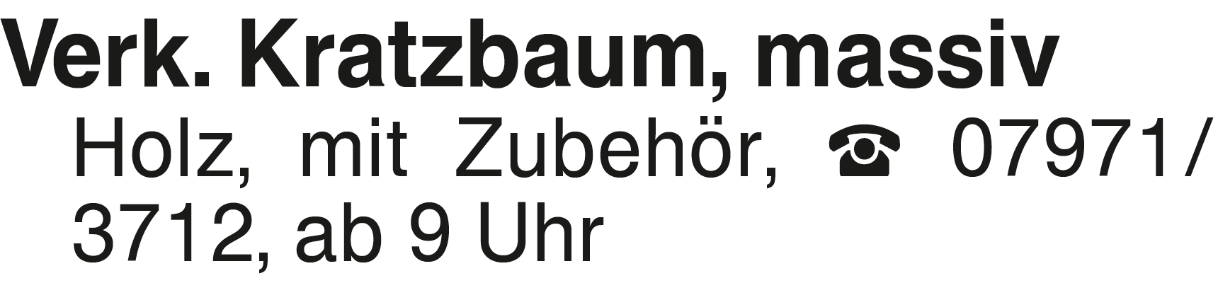 Verk. Kratzbaum, massiv H Verk. Kratzbaum, massiv Holz, mit Zubehör, 07971/3712, ab 9 UhrDas könnte Sie auch interessieren