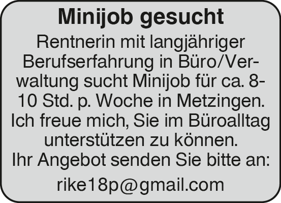 Rubrik: Stellengesuch Minijob / Nebenbeschäftigung
