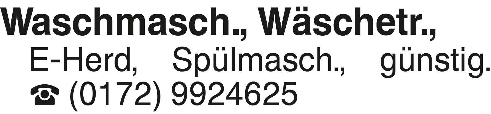 Waschmasch., Wäschetr., E Waschmasch., Wäschetr., E-Herd, Spülmasch., günstig. (0172) 9924625