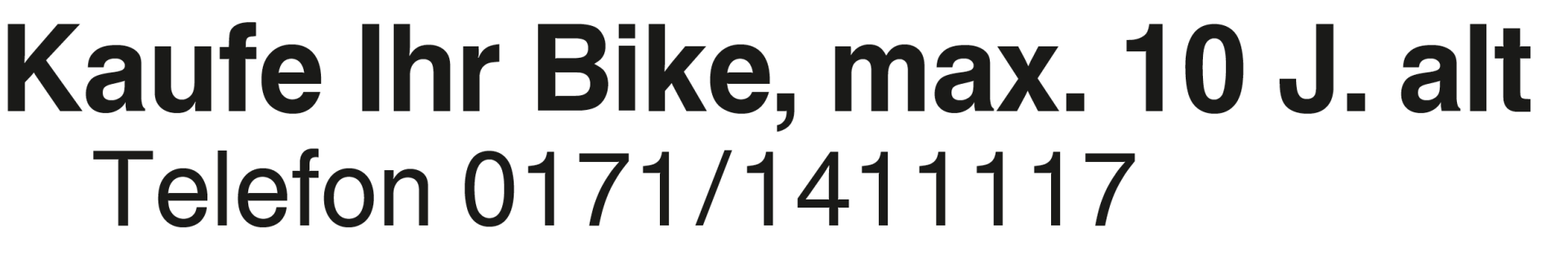 Kaufe Ihr Bike, max. 10 Jahre alt Kaufe Ihr Bike, max. 10 J. alt Telefon 0171/1411117Das könnte Sie auch interessieren