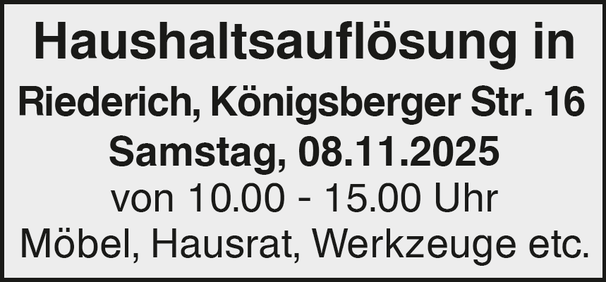 Anzeige vom 6.11.2025 in der Rubrik "Haushaltsauflösung / -Flohmärkte"