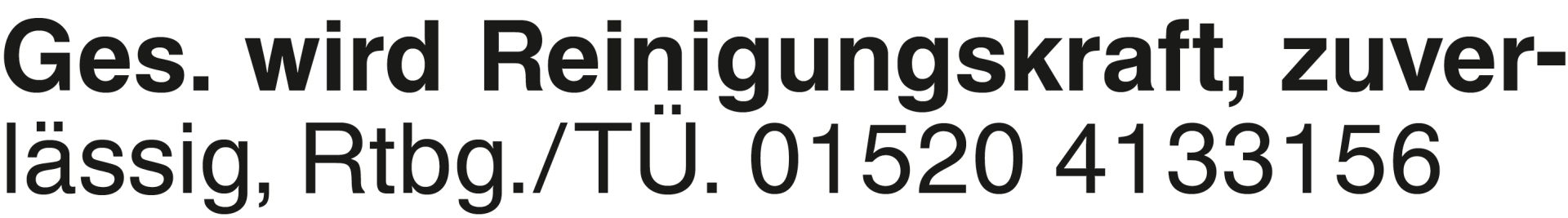 Reinigungskraft Ges. wird Reinigungskraft, zuverlässig, Rtbg./TÜ. 01520 4133156Das könnte Sie auch interessieren