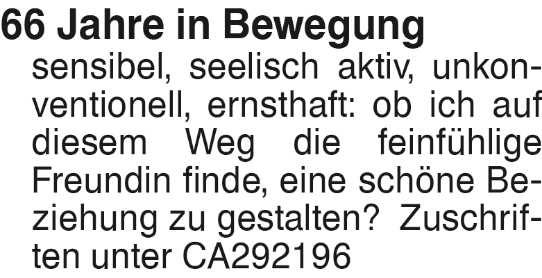 66 Jahre in Bewegung sens sensibel, seelisch aktiv, unkonventionell, ernsthaft: ob ich auf diesem Weg die feinfühlige Freundin finde, eine schöne Beziehung zu gestalten?Das könnte Sie auch interessieren