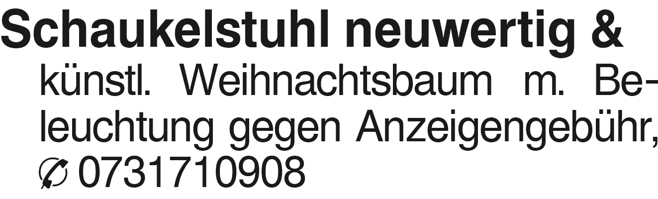Schaukelstuhl neuwertig & Schaukelstuhl neuwertig & künstl. Weihnachtsbaum m. Beleuchtung gegen Anzeigengebühr, 0731710908Das könnte Sie auch interessieren