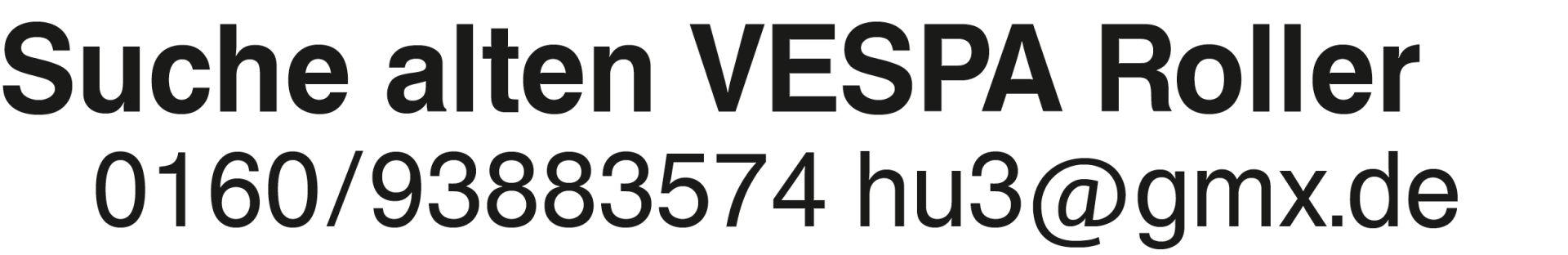 Suche alten VESPA Roller 0160/93883574 hu3@gmx.de Tel. 0160-93883574, andreas.laber8@gmail.comDas könnte Sie auch interessieren