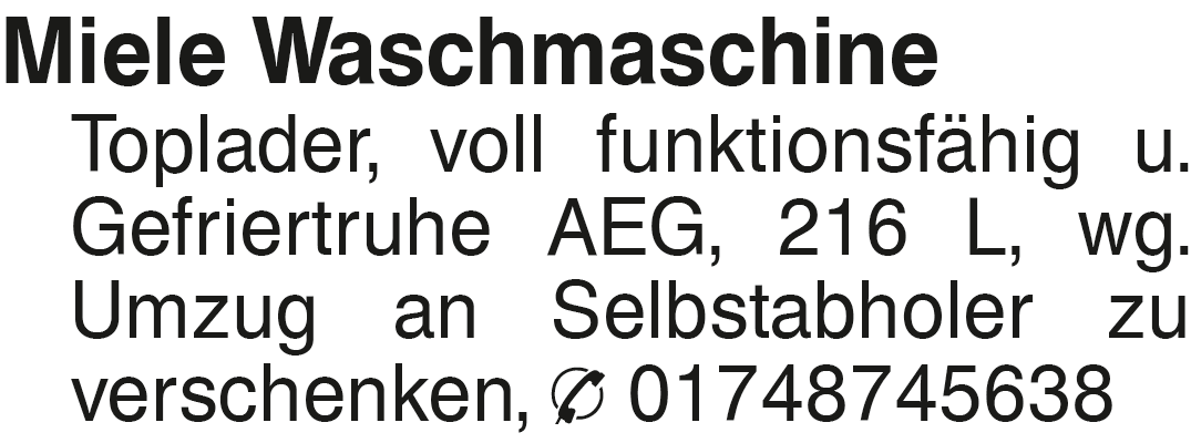Anzeige vom 3.12.2025 in der Rubrik "Zu verschenken"