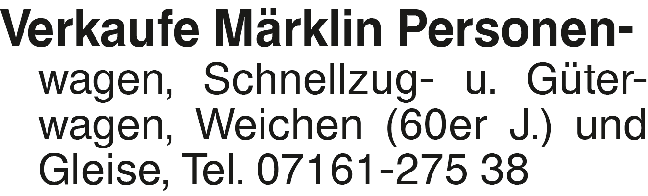 Beschreibung der Anzeige: Märkling H0 und 0-Spur Lo Loks und Wagen aus Sammlung zu verk. Tel. (07323) 9539409 ab 18.00 Uhr