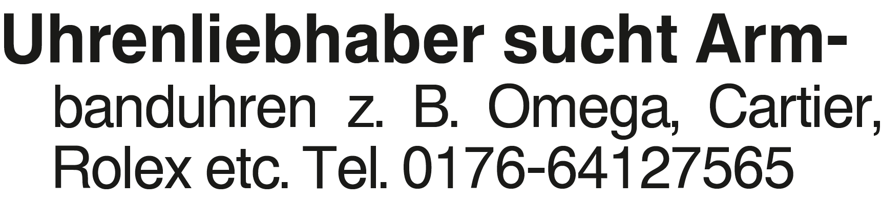 Uhrenliebhaber sucht Arm- Uhrenliebhaber sucht Arm- banduhren z. B. Omega, Cartier, Rolex etc. Tel. 0176-64127565Das könnte Sie auch interessieren