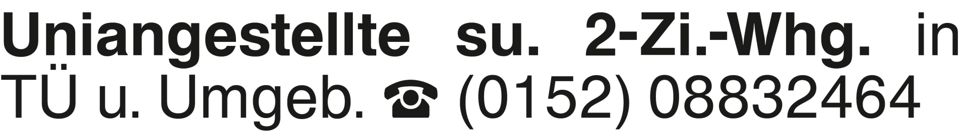 Uniangestellte su. 2-Zi.- Uniangestellte su. 2-Zi.-Whg. in TÜ u. Umgeb. (0152) 08832464Das könnte Sie auch interessieren