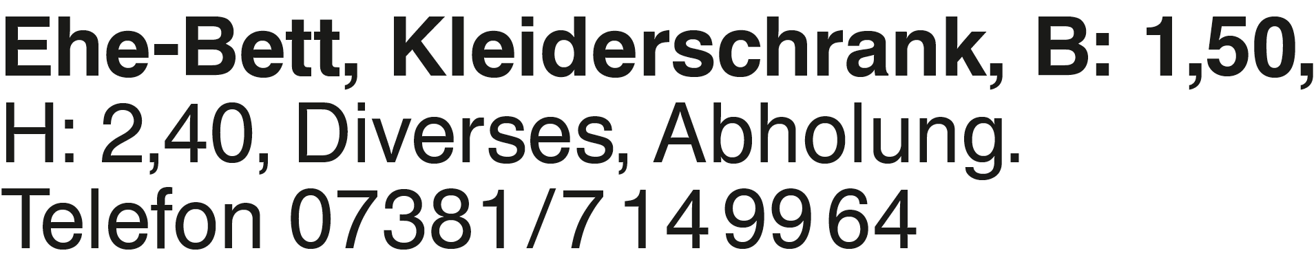 Zu verschenken Ehe-Bett, Kleiderschrank Ehe-Bett, Kleiderschrank, B: 1,50, H: 2,40, Diverses, Abholung. Telefon 07381/7 14 99 64Das könnte Sie auch interessieren