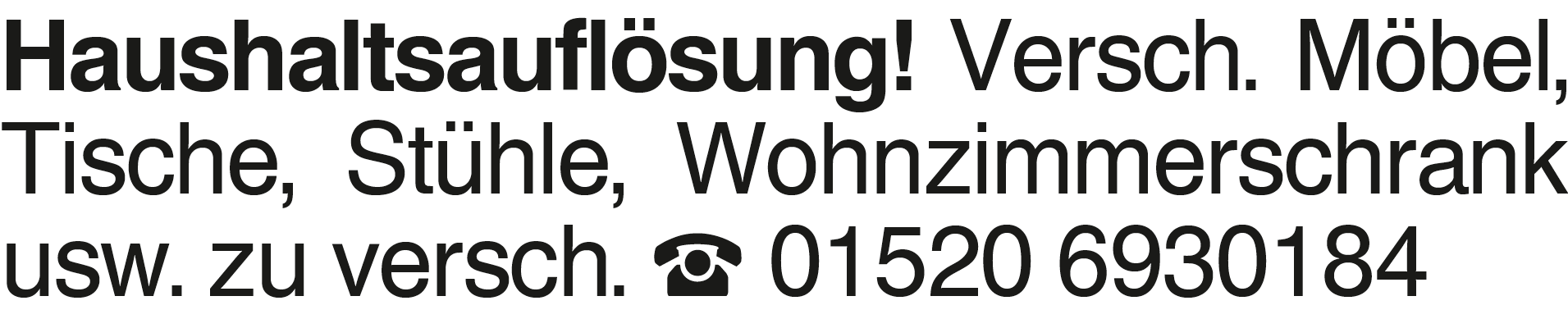 Haushaltsauflösung! Versc Haushaltsauflösung! Versch. Möbel, Tische, Stühle, Wohnzimmerschrank usw. zu versch. 01520 6930184Das könnte Sie auch interessieren