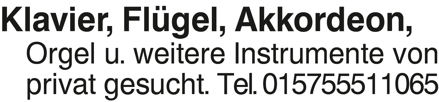 Klavier, Flügel, Akkordeo Klavier, Flügel, Akkordeon, Orgel u. weitere Instrumente von privat gesucht. Tel. 015755511065Das könnte Sie auch interessieren