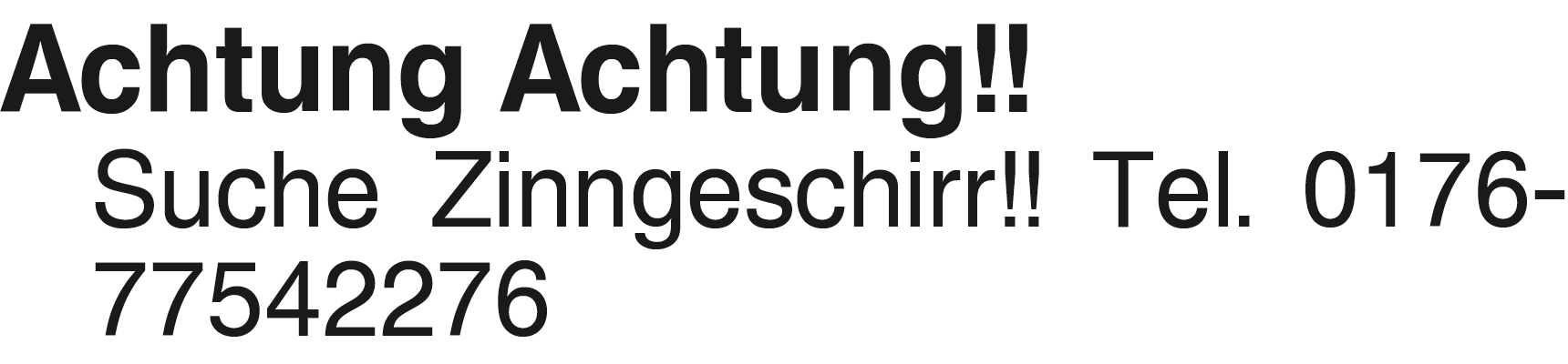 Achtung Achtung!! Suche Z Suche Zinngeschirr!! Tel. 017677542276 Tel. (0176) 31458064, Mandinomarchal187@gmail.comDas könnte Sie auch interessieren