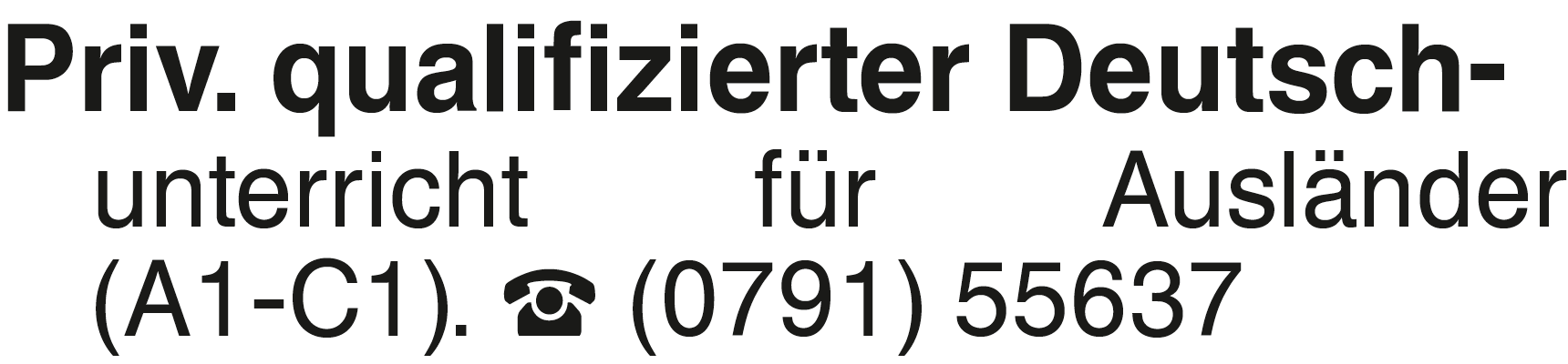 Priv. qulifizierter Deuts Priv. qualifizierter Deutsch- unterricht für Ausländer (A1-C1). (0791) 55637Das könnte Sie auch interessieren