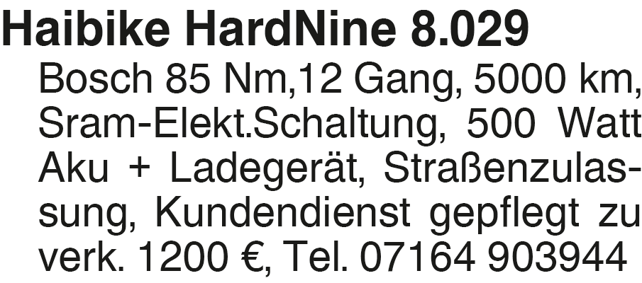 Anzeige vom 14.4.2026 in der Rubrik "Fahrräder"