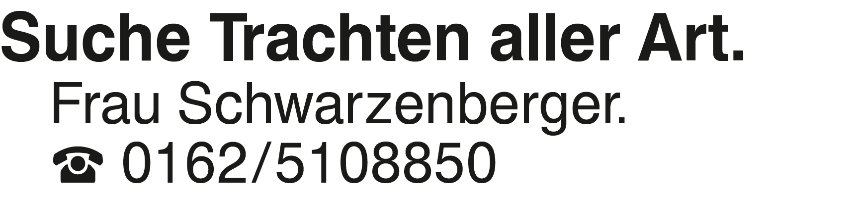 Suche Trachten aller Art. Suche Trachten aller Art. Frau Schwarzenberger. 0162/5108850Das könnte Sie auch interessieren