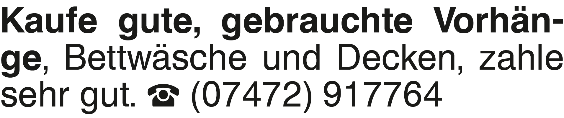 Kauf Bettwäsche Kaufe gute, gebrauchte Vorhänge, Bettwäsche und Decken, zahle sehr gut. (07472) 917764Das könnte Sie auch interessieren