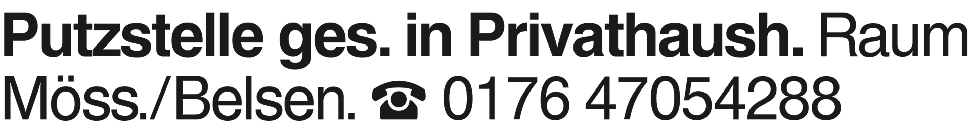 Putzstelle ges. in Privat Putzstelle ges. in Privathaush. Raum Möss./Belsen. 0176 47054288Das könnte Sie auch interessieren