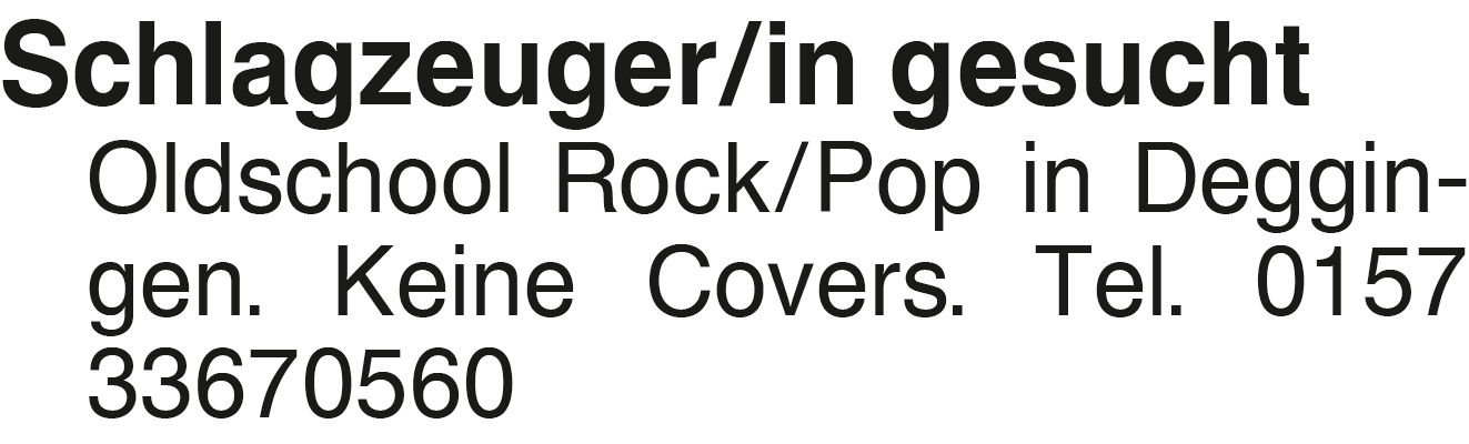 Schlagzeuger/in gesucht O Oldschool Rock/Pop in Deggingen. Keine Covers. Tel. 0157 33670560 -