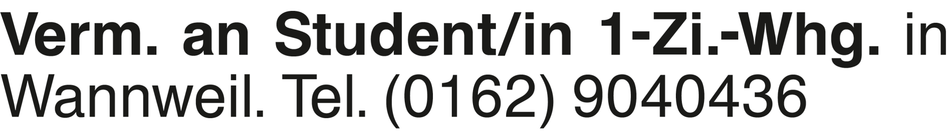 Verm. an Student/in 1-Zi. Verm. an Student/in 1-Zi.-Whg. in Wannweil. Tel. (0162) 9040436Das könnte Sie auch interessieren