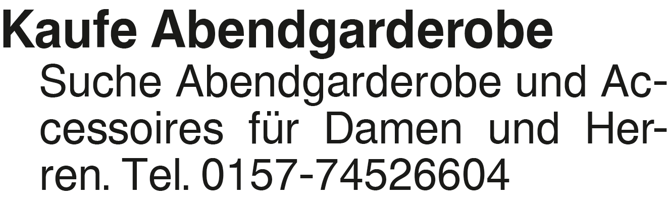 Kaufe Abendgarderobe Such Suche Abendgarderobe und Accessoires für Damen und Herren. Tel. 0157-74526604Das könnte Sie auch interessieren