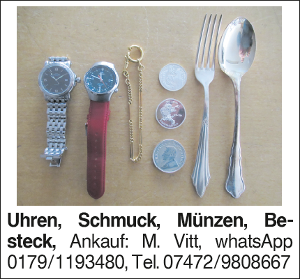Besteck Uhren, Schmuck, Münzen, Besteck, Ankauf: M. Vitt, whatsApp 0179/1193480, Tel. 07472/9808667Das könnte Sie auch interessieren