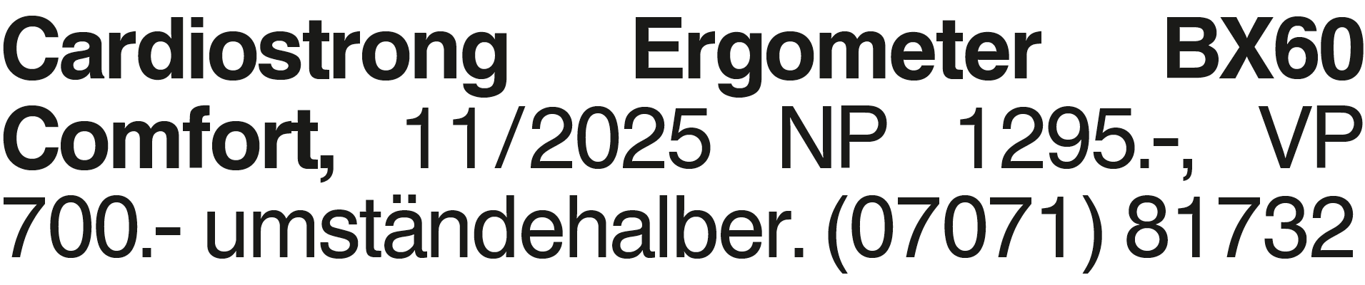 Cardiostrong Ergometer BX Cardiostrong Ergometer BX60 Comfort, 11/2025 NP 1295.-, VP 700.- umständehalber. (07071) 81732Das könnte Sie auch interessieren